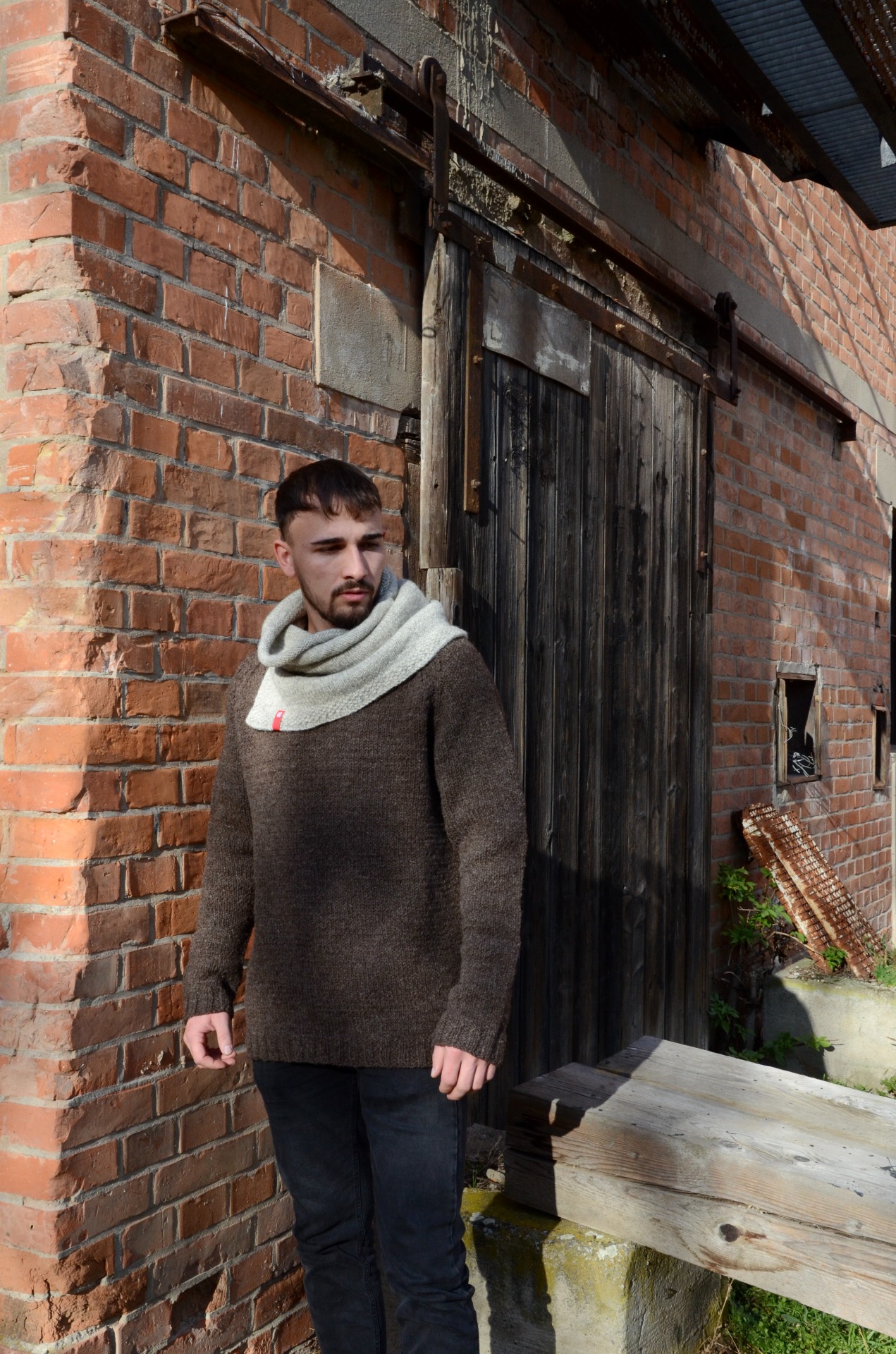 Sveter je uštrikovaný z priadze, ktorú si nechávame spracovať vo Vlnárskej Manufaktúre v Senohrade u manželov Vozárovcov. Štrikujú ho ženy z okolia Banskej Štiavnice.